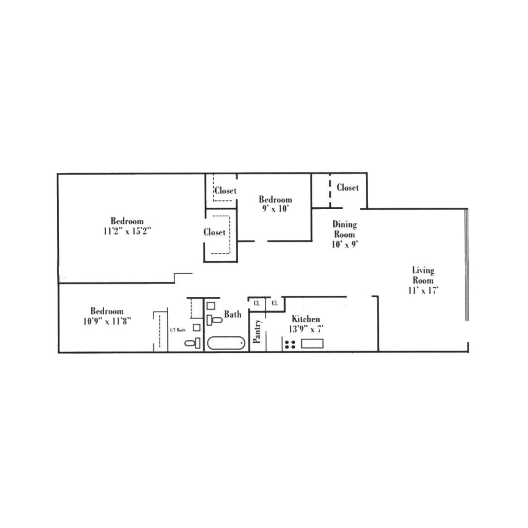 Beds: 3, Baths: 1, SQFT: 1,050
